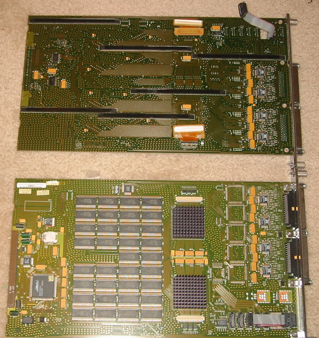 On the left, supplies 1 and 2 are hiding. The circuit for all three supplies is pretty much identical; There’s an AD7541 12 bit DAC for each supply, which appears to be analog sample and holded to get 3 or so separate outputs. This DAC costs $46 at Digikey and there’s 3 of them on here. The three outputs are Vset, Iset, and I think overvolt voltage. Interestingly I could not find any voltage sensing apparatus on here, for when the current regulation kicks in for example (or to show how many amps a load is drawing). I am wondering if they are doing some kind of self-made ADC using dual slope or similar since there’s an awful lot of 40xx analog multiplexers on here.
